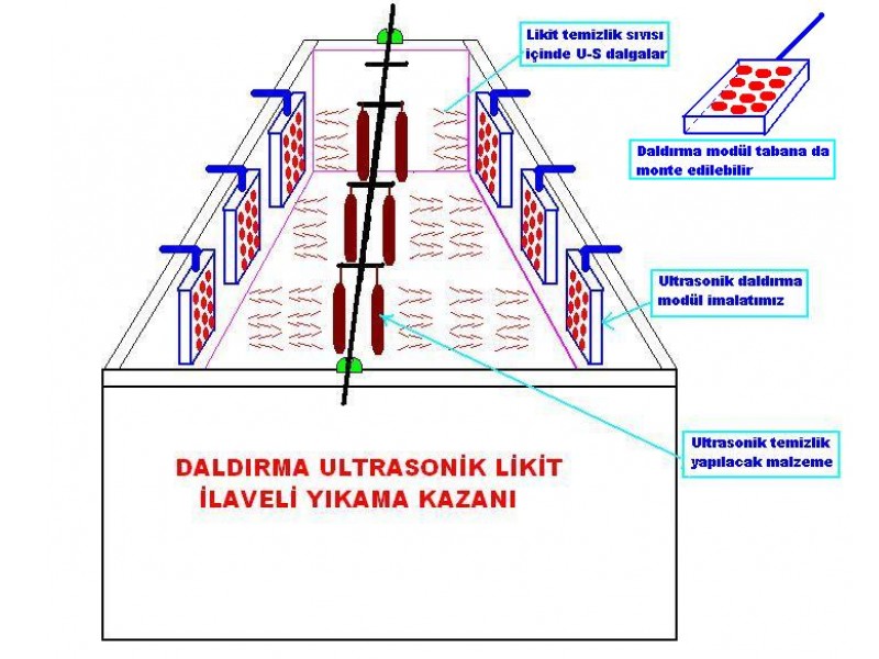 Daldırma modül ve temizlik yapılacak parça konumlandırması tabanda ve yan duvarlarda animasyonu